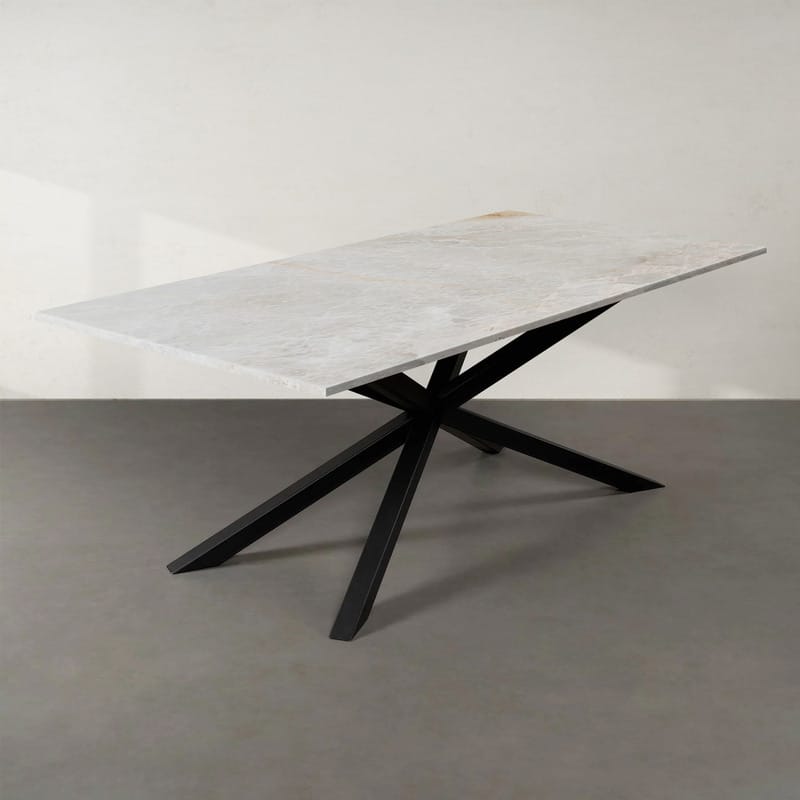 Entdecke den eleganten Ponte Marmor Esstisch Basic – handgefertigt aus einem Steinbruch in Portugal. Bring die Kunstwerke der Natur an deinen Esstisch. Zusammen mit einem pulverbeschichteten, schwarzen Spider-Metallgestell und einer eckigen Platte, ist der Tisch stabil und ein Hingucker.